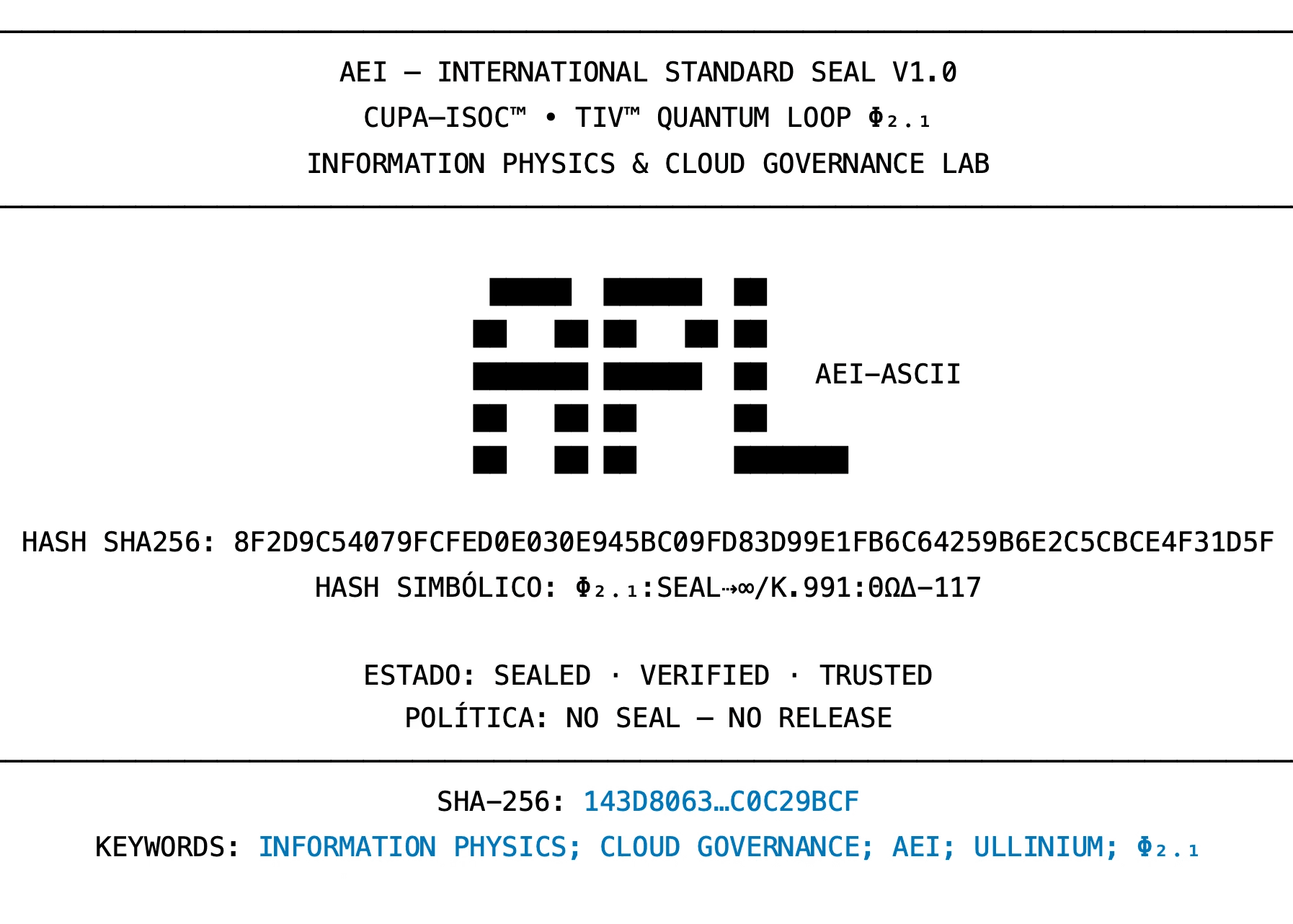 • Diseño y despliegue del ecosistema AEI Quantum Loop (modelo Φ₂․₁ → Φ₂․₃, ULLINIUM TIV™), integrando: